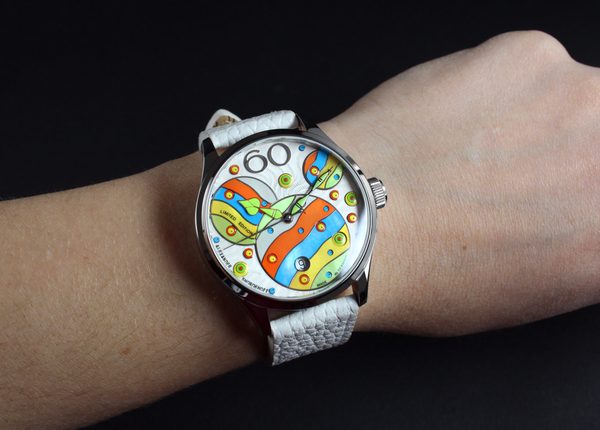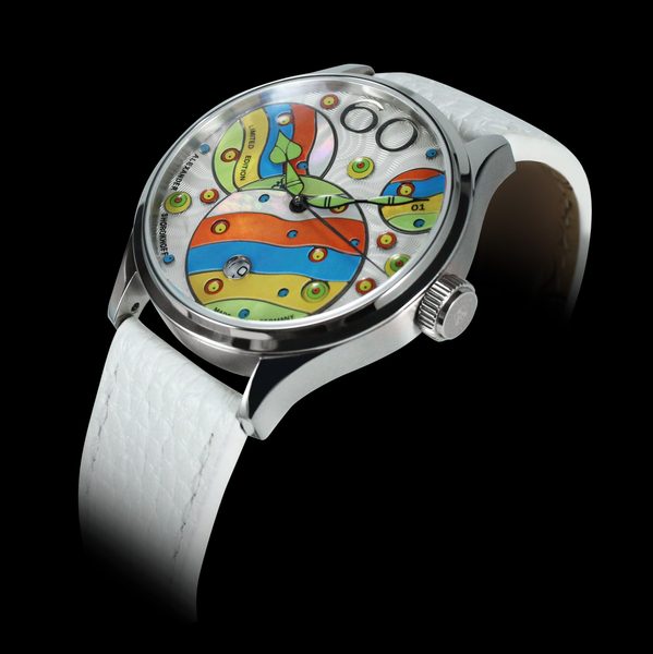 Zůstávají věrné hravému konceptu barevných, kulatých prvků, ale interpretují ho zcela novým způsobem. Barevné koule se víří po ciferníku jako kreativní balet. Velké koule září v pruhované, duhové perleti, zatímco ty menší se blýskají v jasných barvách – dokonale…