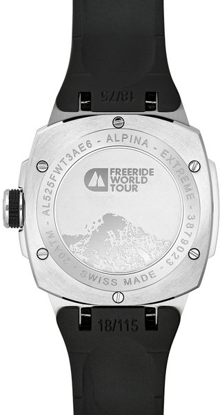 Hodinky Alpina Alpiner Extreme Automatic Freeride World Tour Special Edition AL-525FWT3AE6 ztělesňují základní principy společnosti Alpina, tedy koncepci "4", což znamená splnění těchto vlastností: antimagnetické, nárazuvzdorné, vodotěsné a s pouzdrem z nerezové oceli. Jsou výborným společníkem pro sportovní aktivity, ale i pro každodenní nošení.