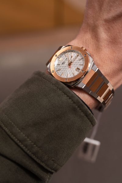 Ocelové pouzdro v sobě skrývá švýcarský bateriový strojek AL-220 (základem je Ronda 515), který disponuje funkcí ukazatele data na pozici šesté hodiny. Dokonale přehledný číselník je chráněn safírovým…