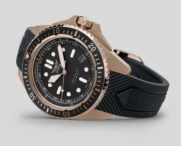 AVIATOR XPRO DIVE 200 jsou hodinky s dvojitým prostředím, které jsou navrženy tak, aby vynikaly ve dvou světech. Jejich dvojitá bezdekompresní stupnice, adaptovaná z potápěčské příručky Navy SEALs, vás udrží v bezpečných časových limitech, ať už se potápíte na hladině moře nebo prozkoumáváte vody ve vysokých nadmořských výškách.