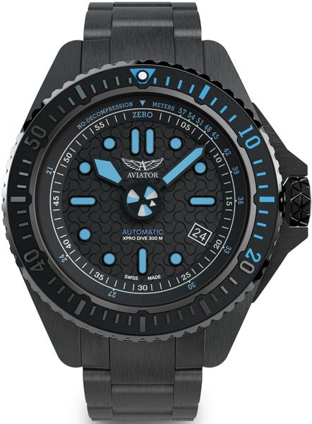 Hodinky Aviator XPRO DIVE BREATHER 300 AUTO byly navrženy pro ty, kteří se orientují v oblacích i v hlubinách vod, a nově definují profesionální měření času. Tyto hodinky, navrženy pro potápěče i piloty, kombinují leteckou přesnost s odolností v hluboké vodě. Díky vodotěsnosti do 300 metrů, kvalitnímu švýcarskému strojku s automatickým nátahem a dobře čitelnému ciferníku hodinky zajišťují špičkový výkon, ať už se vznášíte nad oblaky nebo zkoumáte hlubiny vod.