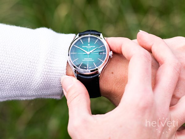 Model Baume & Mercier Clifton M0A10592 má lakovaný číselník zelené barvy, která směrem od středu k okrajům nabývá na hloubce. O přehlednost se starají kontrastní stříbrné alfa ručky a plastické jehlové indexy na hodinových pozicích. Hodinky pohání mechanický strojek vlastní…