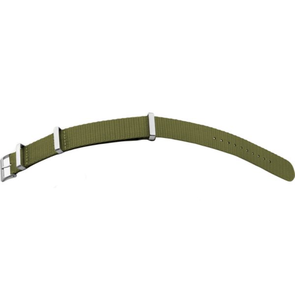 Nylonový řemínek BEAR olivové barvy s šířkou 20 mm a se stříbrnou sponou. Řemínek je vyroben z robustního dvouvrstvého nylonu. Dírky a boky řemínku jsou tepelně zapečetěny pro vysokou odolnost. Spona je z broušené oceli.