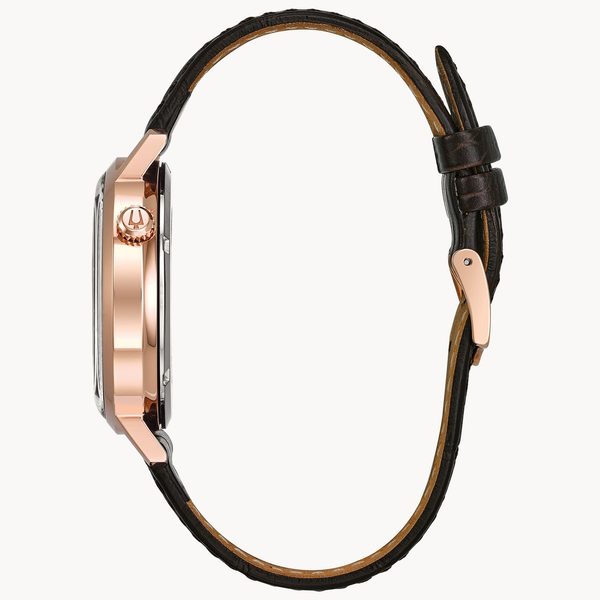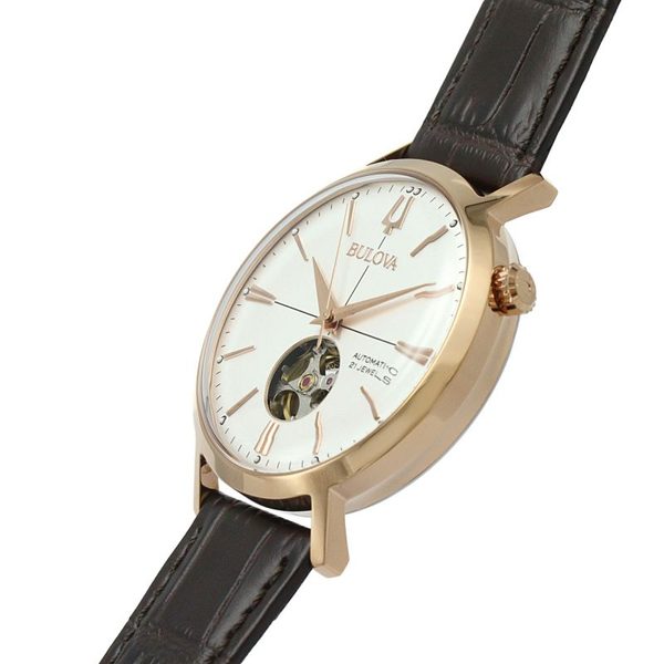 Pouzdro hodinek Bulova Aerojet Automatic 97A136 je vyrobeno z ušlechtilé oceli s růžovozlatou úpravou povrchu a skrývá v sobě japonský mechanický strojek Miyota 82S0 s automatickým nátahem. Ten diponuje 21 kameny a jeho práci na frekvenci 21600 polokmitů za hodinu lze pozorovat jak průhledným dýnkem, tak i průhledem na…