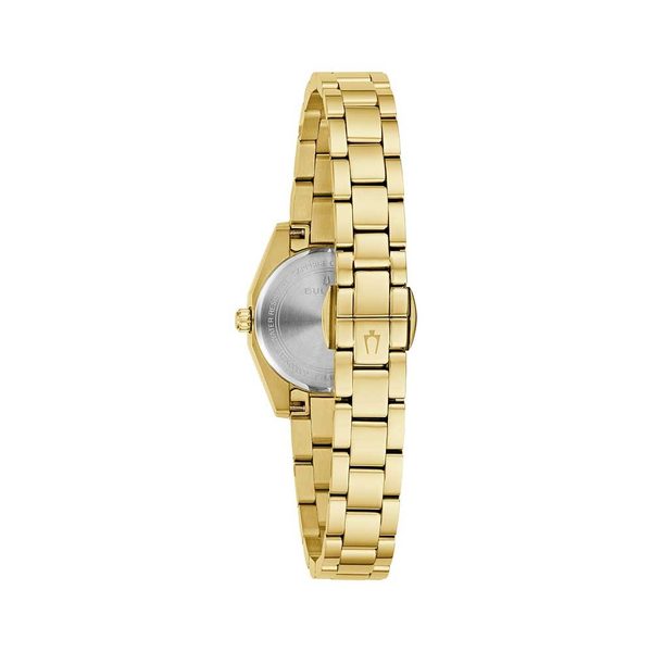 Hodinky Bulova Surveyor 97L187 jsou modelem z řady Bulova Classic. Pouzdro i náramek hodinek jsou vyrobené z nerezové oceli se zlatou PVD úpravou povrchu. Náramek je zakončen elegantní motýlovou sponou.Růžový číselník zaujme…