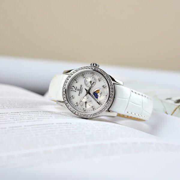 Luxusní vzhled hodinek udává pouzdro z ušlechtilé oceli a perleťový číselník. Tyto funkční hodinky navíc ukazují den v týdnu, aktuální den v měsíci a dokonce jsou i vybaveny ukazatelem měsíční fáze. Nechybí…