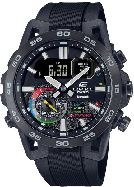 Casio Edifice Sospensione ECB-40MP-1AEF jsou pánské sportovní hodinky s kombinovaným analogovým a digitálním číselníkem a celou řadou užitečných funkcí, zabalených do atraktivního, moderně vyhlížejícího pouzdra, nově kombinujícího karbon a ocel. Casio Edifice ECB 40MP-1A upoutají svým propracovaným číselníkem a dynamickým vzhledem, pro nějž byly inspirací závodní vozy. Model klade důraz na dobrou přehlednost a snadnou ovladatelnost, pro možnost plného využití všech funkcí, které nabízí. Mezi…