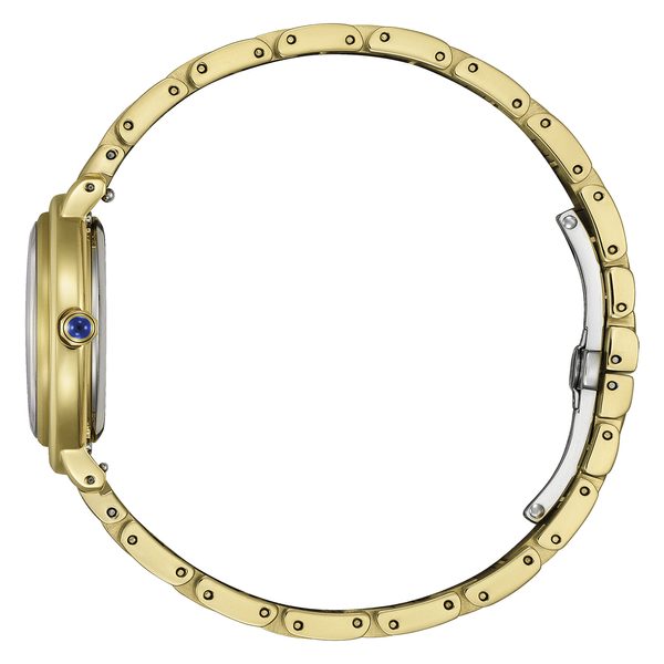 Hodinky Citizen EM1090-78X mají pouzdro včetně náramku vyrobené z ušlechtilé oceli s PVD úpravou zlaté barvy. Součástí balení je také řemínek z kůže z jablek navíc. Uvnitř pouzdra spolehlivě…