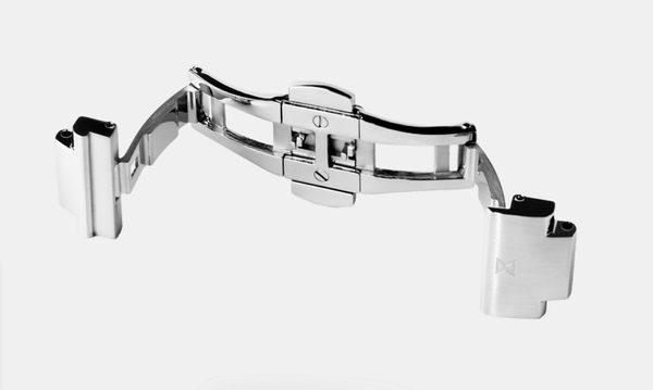 Pouzdro hodinek je vyrobeno z kvalitní ušlechtilé oceli, na které navazuje kaučukový řemínek s trnovou brandovanou sponou. Černý ciferník chrání safírové sklíčko, jež je odolné vůči jakémukoliv poškrábání.