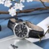 Model Epos Ladies 4432.122.20.25.15 je vyroben v kombinaci ocelového pouzdra a koženého řemínku. Číselník je chráněn safírovým sklem. Hodinky pohání švýcarský automatický strojek ETA 2671, jehož práci je možné pozorovat skrz průhledné dýnko. Rezerva chodu činí až 38 hodin. O praktickou stránku se stará ukazatel data na 3. pozici. Vodotěsnost tohoto modelu je 3 ATM – hodinky tedy…