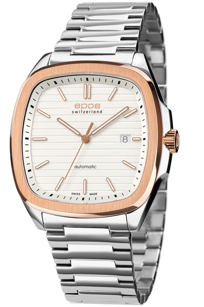 Hodinky Epos Timeless 3511.152.34.10.30 díky svému charakteristickému leštěnému pouzdru ve tvaru polštáře a kartáčované lunetě dosahuje dokonalé rovnováhy mezi elegancí a stylem.