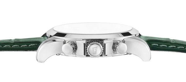 V ocelovém pouzdře o průměru 39,3 mm je usazený zelený číselník, který slouží jako podklad pro výrazné ručky opatřené luminiscencí a elegantní číslice. Na číselníku chráněném safírovým sklíčkem se kromě…