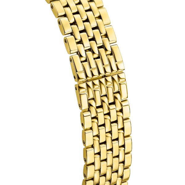 Hodinky jsou vyrobeny v celoocelovém provedení se zlatou IP povrchovou úpravou. V ocelovém pouzdře o průměru 29 mm je zasazený perleťový číselník. Na číselníku chráněném…