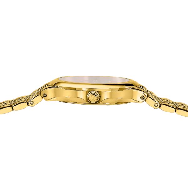 Hodinky jsou vyrobeny v celoocelovém provedení se zlatou IP povrchovou úpravou. V ocelovém pouzdře o průměru 29 mm je zasazený modrý číselník. Na číselníku chráněném…