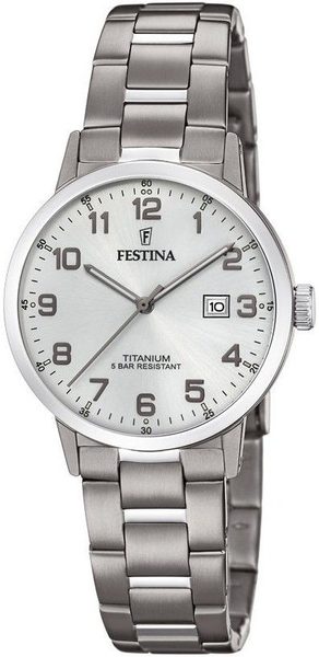 Hodinky značky Festina jsou jako stvořené pro všechny dámy, co si potrpí na klasické doplňky vysoké kvality. Stříbrný ciferník v klasickém stylu zdobí číselné indexy s luminiscenčními ručičkami. Nechybí ani užitečná datumovka na pozici tří hodin. Titanový tah spolu s titanovým pouzdrem tvoří dokonalý celek. Titan je velice lehký, odolnější než ocel…