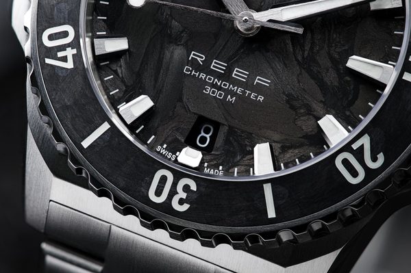 Karbon přináší do kolekce Reef nový vizuální zážitek. Každý číselník i vložka lunety mají díky výrobnímu procesu jedinečnou strukturu a vzor. Krátká uhlíková…