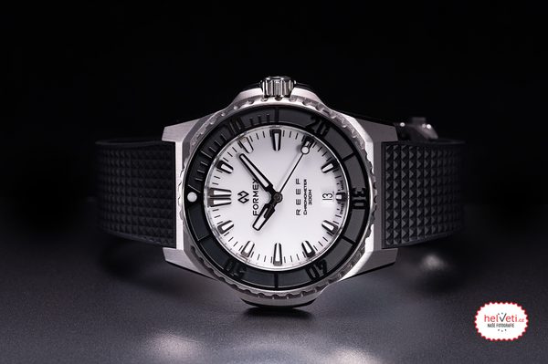 Švýcarské potápěčské hodinky Formex Reef 42 Automatic Chronometer 2200.1.6312.910 na první pohled zaujmou výrazným jasně rozpoznatelným pouzdrem a skvěle čitelným číselníkem. Jsou moderní podobou potápěčských hodinek vhodných pro jakoukoliv příležitost, které se vyznačují jednoduchými liniemi, vysokou odolností a skvělou přehledností.