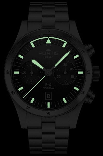 Švýcarské hodinky Fortis Flieger F-43 Bicompax Black F4240006 na první pohled zaujmou typickým pilotním designem s jasným rukopisem značky Fortis. Zdobí je dokonalá přehlednost, robustnost a odolnost. Tyto hodinky skvěle poslouží nejen v kokpitu letadla, ale i při každodenním nošení.