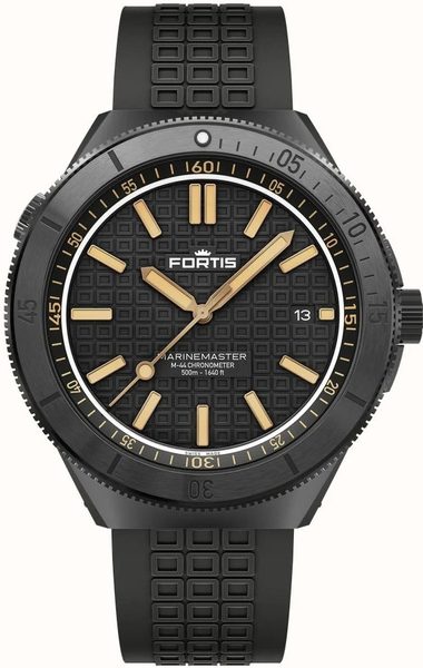 Švýcarské hodinky Fortis Marinemaster M-44 DLC Black Resin COSC F8120031 přináší nevšední potápěčský design ve stylu značky Fortis. Zdobí je dokonalá přehlednost, robustnost a odolnost. Tyto hodinky skvěle poslouží nejen pod vodou, ale i při každodenním nošení.