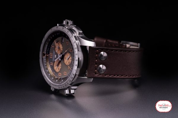 Vydejte se na nejturbulentnější oblohu s tímto vysoce kontrastním Khaki Aviation X-Wind Chrono Quartz GMT. Tyto pilotní hodinky s velkými číslicemi potaženými Super-Luminova a ručičkami ve stylu přístrojů v kokpitu jsou připraveny na jakékoli dobrodružství.