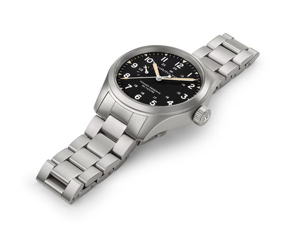 Modely Hamilton Khaki Field Mechanical Power Reserve ctí tradiční design a základní funkčnost rodiny Khaki Field a zároveň přináší moderní prvky a nejnovější hodinářské technologie a inovace. Díky novému manuálně natahovacímu strojku H-23, vyvinutému společností ETA exkluzivně pro Hamilton, umožňuje (poprvé) vizualizaci 80hodinové rezervy chodu přímo na ciferníku. Černý ciferník, opatřený robustním khaki zeleným řemínkem NATO, hrdě zobrazuje „rezervu chodu 80 hodin“ a „F“ pro plnou a „E“ pro prázdnou…