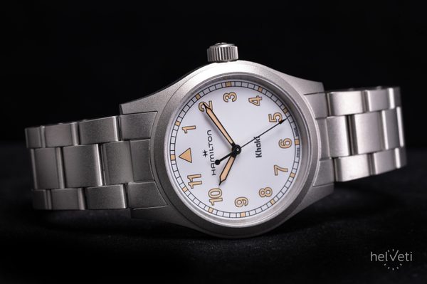 Modely Khaki Field Quartz jsou připraveny na dobrodružství a jsou spolehlivým a odolným společníkem připraveným na průzkum. Khaki Field Quartz jsou mixem preciznosti, inovací a designu zaměřeného na užitek a kombinuje 38mm čistý bílý ciferník s moderním kovovým náramkem.