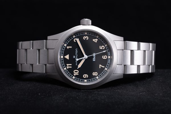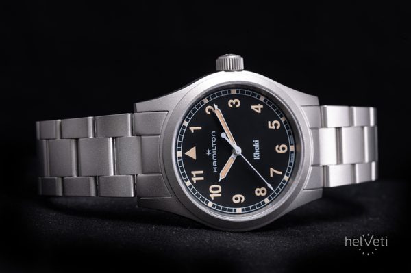 Modely Khaki Field Quartz jsou připraveny na dobrodružství a jsou spolehlivým a odolným společníkem připraveným na průzkum. Khaki Field Quartz jsou mixem preciznosti, inovací a designu zaměřeného na užitek a kombinuje 38mm čistý černý ciferník s moderním kovovým náramkem.