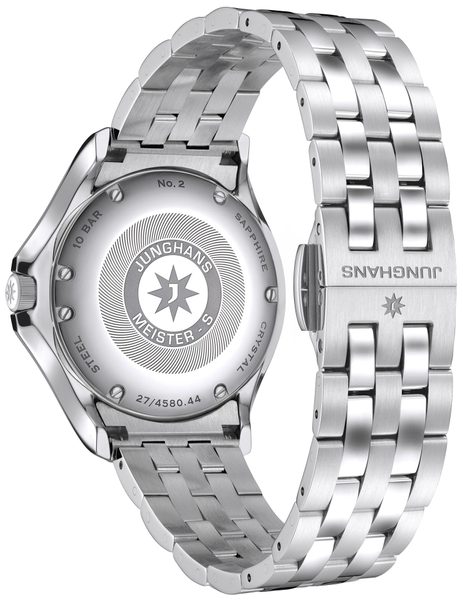 Německé hodinky Junghans Meister S Automatic 36 mm 27/4683.44 z řady Meister přináší revoluční interpretaci ledengární řady Mesiter. Ta spočívá především ve sportovním vzhledu i vlastnostech. Nyní i ve zmenšené verzi pouzdra, vhodné pro dámská, nebo menší pánská zápěstí.