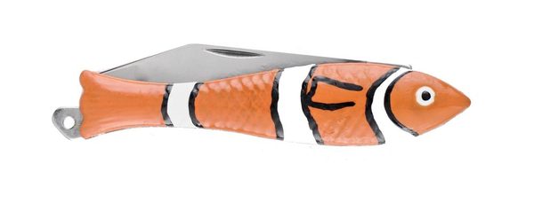 Clown je celoplošně potištěný, legendární kapesní nůž Rybička. Patří mezi dekorativní obrázkové nože, které jsou potištěné speciální UV LED technologií. Hodí se proto jako dárek k nejrůznějším příležitostem. Zatímco čepel nože je vyrobena z nerezové oceli 420 o tvrdosti 52-55 HRc, střenka je ze zinkové slitiny. Nůž je navíc opatřen dekorativní karabinkou.