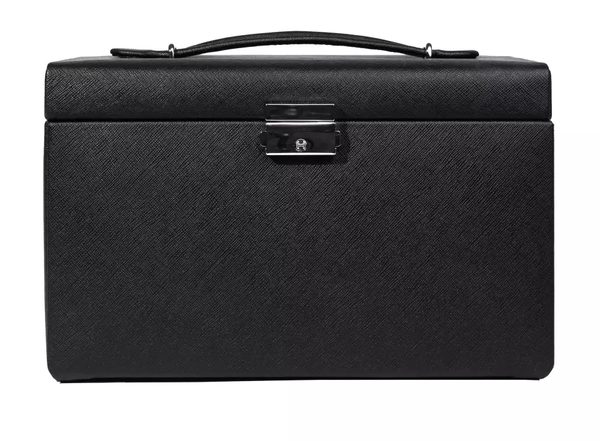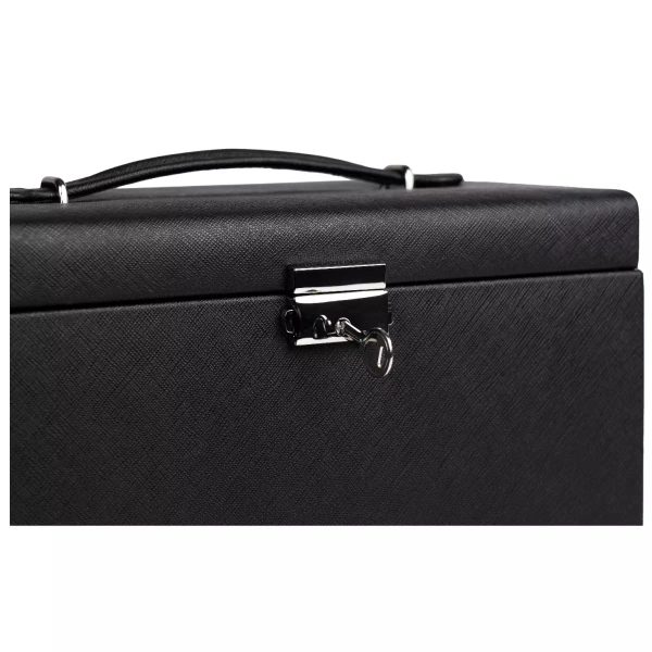 Šperkovnice Friedrich Lederwaren Classico Rosé 23238-20 černé barvy je vyrobena ze syntetického materiálu. Obsahuje několik pater pro uložení různých typů šperků, zrcátko a pásek pro umístění náušnic najdeme ve víku šperkovnice.