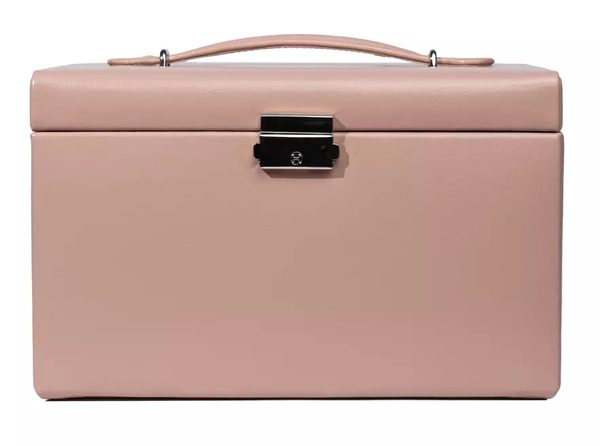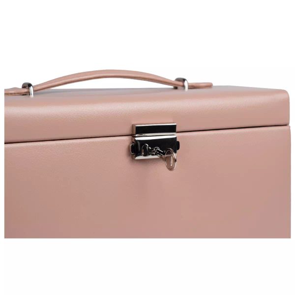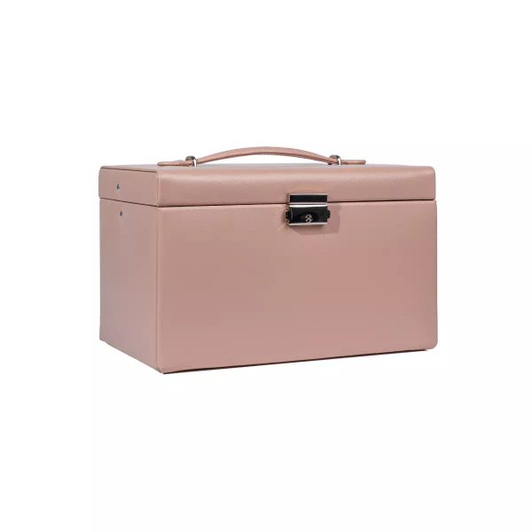 Šperkovnice Friedrich Lederwaren Classico Rosé 23238-90 růžové barvy je vyrobena ze syntetického materiálu. Obsahuje několik pater pro uložení různých typů šperků, zrcátko a pásek pro umístění náušnic najdeme ve víku šperkovnice.