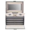 Šperkovnice Friedrich Lederwaren Jolie 2.0 23256-94 šedé barvy je vyrobena ze syntetické kůže. Vnitřek je vyroben z veluru béžové barvy.