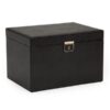 Šperkovnice Wolf Palermo 213002 černé barvy s béžovým interiérem je vyrobena z prvotřídní kůže s kovovými doplňky zlaté barvy. Okouzlující a sofistikované šperkovnice Palermo skvěle poslouží pro stylové vystavení a uložení vašich šperků.
