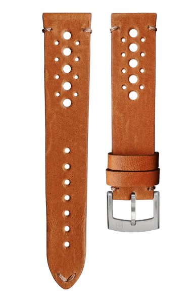 Kožený řemínek Biatec | Zlatohnědý Racing – 20 mm – Stříbrná