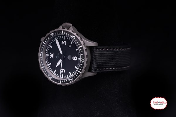 Pískované ocelové pouzdro hodinek Laco Hamburg DIN 8330 doplňuje černý voděodolný Nytech řemínek.…