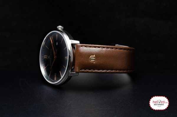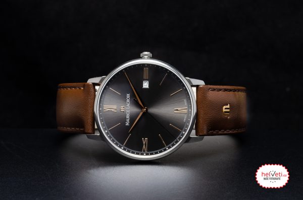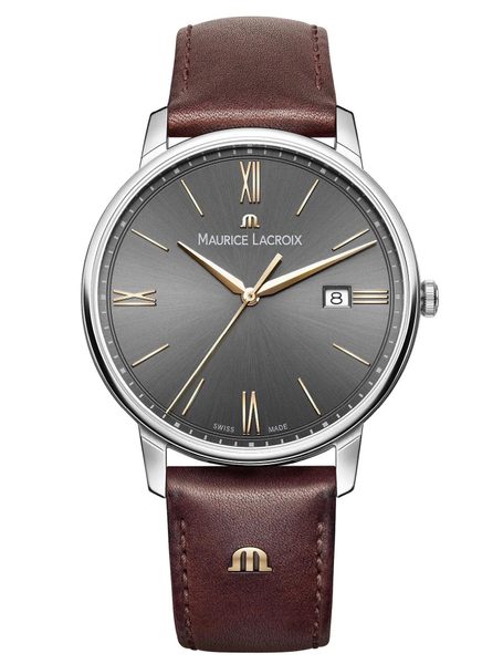 Hodinky Maurice Lacroix Eliros Date EL1118-SS001-311-1 mají pouzdro vyrobené z ušlechtilé oceli, které je doplněno hnědým řemínkem z telecí kůže. V jeho nitru spolehlivě tiká švýcarský bateriový strojek Ronda 515. Strojek disponuje ukazatelem data, který najdeme na třetí hodině.