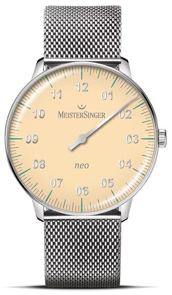 Kolekce Neo je již řadu let základem nabídky značky MeisterSinger. Její design připomíná elegantní společenské hodinky z 50. a 60. let, přičemž úzký okraj pouzdra staví ciferník do středu pozornosti. Mírně zakřivené sklo ještě více umocňuje retro kouzlo.