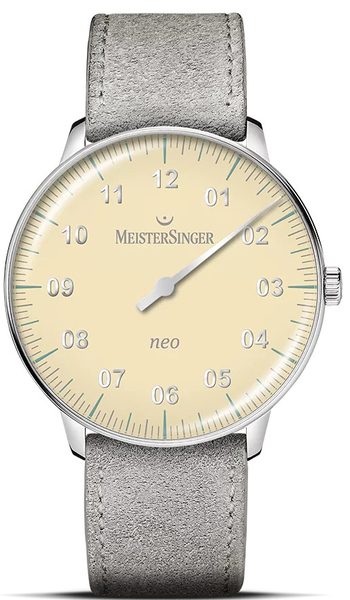 Kolekce Neo je již řadu let základem nabídky značky MeisterSinger. Její design připomíná elegantní společenské hodinky z 50. a 60. let, přičemž úzký okraj pouzdra staví ciferník do středu pozornosti. Mírně zakřivené sklo ještě více umocňuje retro kouzlo.
