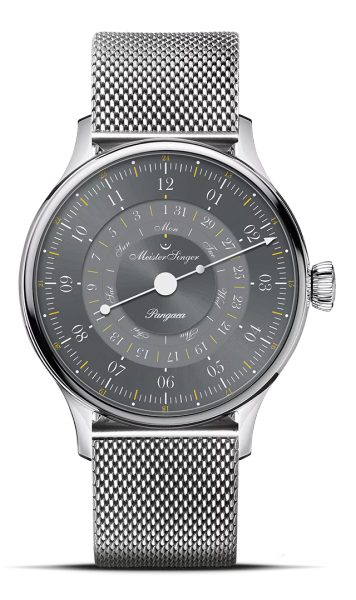 Hodinky MeisterSinger Pangaea Day Date 365 Grey PDD365927 spadají do řady Classic Plus a nabízí netradiční, ale o to zajímavější zobrazení času pomocí jedné jediné ručky. Hlavním znakem tohoto modelu je ukazatel dne a data, zobrazený pomocí disků ve středu číselníku. Příznivci kvalitní hodinařiny a netradičních řešení si tedy rozhodně přijdou na své.