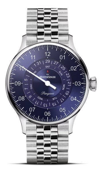 Hodinky  MeisterSinger Pangaea Day Date PDD908 spadají do řady Classic Plus a nabízí netradiční, ale o to zajímavější zobrazení času pomocí jedné jediné ručky. Hlavním znakem tohoto modelu je ukazatel dne a data, zobrazený pomocí disků ve středu číselníku. Příznivci kvalitní hodinařiny a netradičních řešení si tedy rozhodně přijdou na své.