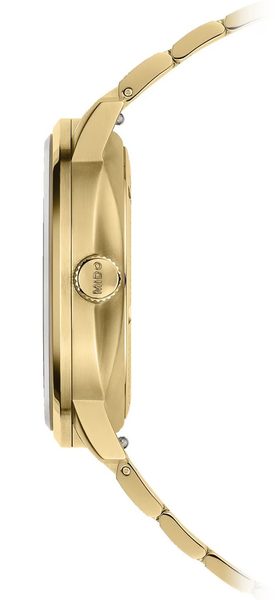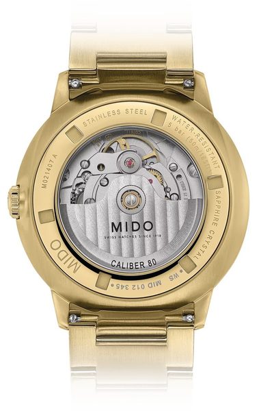 Hodinky Mido M021.407.33.411.01 mají pouzdro včetně náramku vyrobené z ušlechtilé oceli 316L s PVD úpravou barvy růžového zlata. V pouzdře spolehlivě tiká švýcarský mechanický strojek Caliber 80 (základem je ETA C07.611) s automatickým nátahem. Ten pracuje na frekvenci 21600…