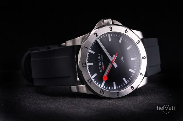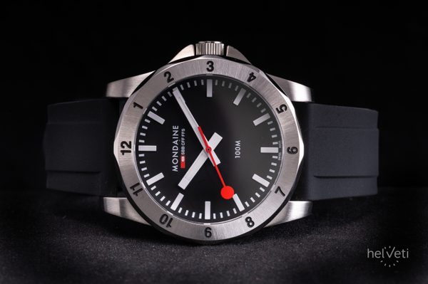 Pouzdro modelu Mondaine MSN.42120.RB je vyrobeno z ušlechtilé oceli a hodinky na ruce drží díky kvalitně zpracovanému silikonovému řemínku černé barvy se stříbrnou trnovou sponou.