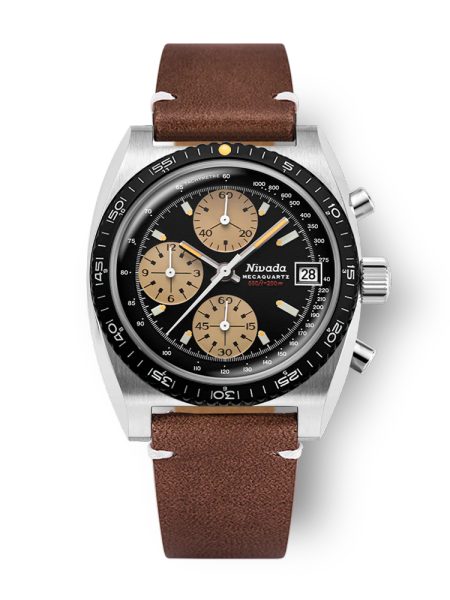 Nivada Grenchen Autochron Mecaquartz – Brown Leather White Stitching