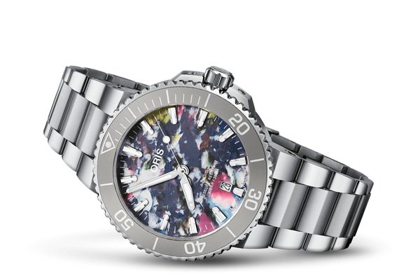 Švýcarské hodinky Oris Aquis Date Upcycle 41,5 mm 01 733 7766 4150-Set zaujmou svým specifickým, vysoce atraktivním "potápkovým" provedením a excelentním zpracováním. Tento model výborně poslouží nejen pod vodou, ale i při každodenním nošení. Tato verze má číselník, vyrobený z recyklovaných plastů, vylovených z oceánu. To znamená, že každý kus má trochu jinou podobu číselníku a tím je zcela unikátní.