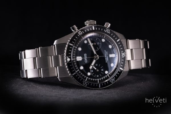 Švýcarské hodinky Oris Divers Sixty‑Five Chronograph 01 771 7791 4054-07 8 20 18 zaujmou svým retro "potápkovým" provedením a excelentním zpracováním. Tento model výborně poslouží nejen ve vodě, ale i při každodenním nošení.