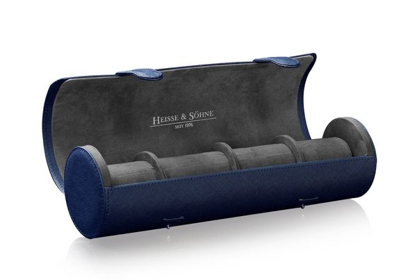Elegantní pouzdro na hodinky Heisse & Söhne Rondo 5 70019-139 pro 5 kusů hodinek. Vyrobeno z vysoce kvalitní syntetické kůže modré barvy a šedým, velurovým interiérem.