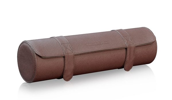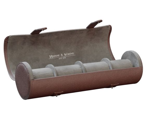 Elegantní pouzdro na hodinky Heisse & Söhne Rondo 5 70019-98 pro 5 kusů hodinek. Vyrobeno z vysoce kvalitní syntetické  kůže hnědé barvy a světle šedým, velurovým interiérem.