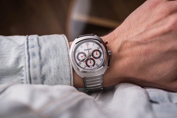 Robot Robotic One Silver v odvážném asymetrickém pouzdře z oceli 904L představuje novou tvář značky Robot – sebevědomou, originální a nezaměnitelnou. Design modelu navrhl švýcarský designér Marcus Eilinger, autor ikonických hodinek pro značky jako IWC, Tudor nebo H. Moser & Cie. Inspirací pro tvar pouzdra se stala stylizovaná hlava robota a vzdává tak hold českému původu samotného slova „robot“.