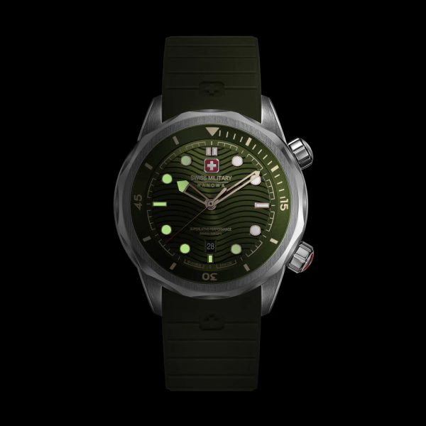 Hodinky zaujmou sporotvním zeleným číselníkem s přehledným rozložením a zajímavým vlnkovým vzorem. Robustní ocelové pouzdro o průměru 43 mm je vybaveno dvěmi šroubovacími korunkami – jedna pro nastavení času, druhá pro nastavení doby potápění. Hodinkám nechybí ani datumovka na pozici 6. hodiny a kvalitní safírové sklíčko s vysokou odolností proti poškrábání.…