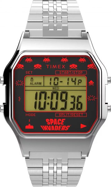 Hodinky Timex TW2V30000U8 pocházejí z unikátní kolekce T80, která je inspirovaná ikonami osmdesátých let. Tento model z jedinečné řady Special Projects vzdává hold arkádové hře Space Invaders z 80. let. Digitální retro hodinky s výrazným designem a praktickými funkcemi rozhodně vzbudí pozornost.
